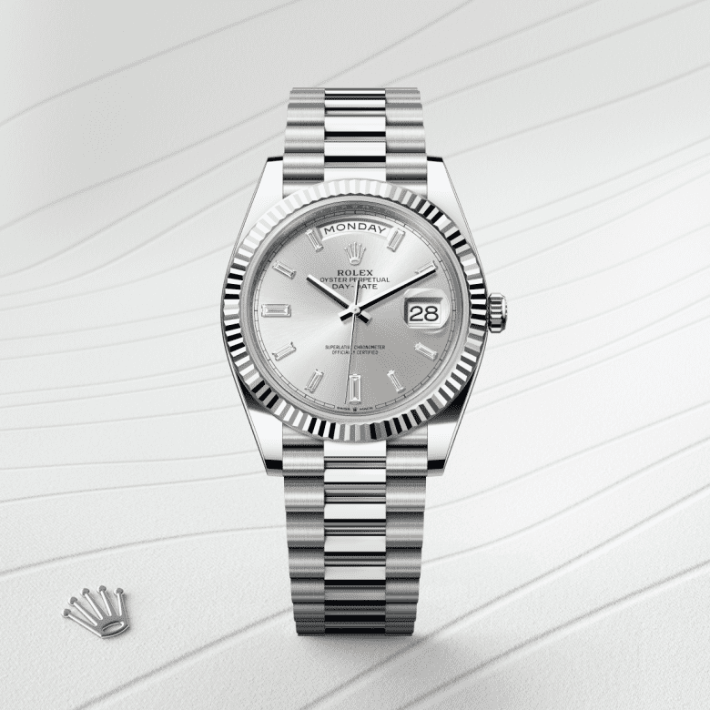 Day-Date(デイデイト) 40 | オイスター、40 mm、ホワイトゴールド、ダイヤモンド リファレンス 228349RBR-0001